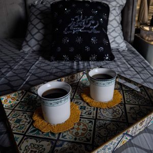 The Dazzling Cutdana Product is a beautiful handmade decorative item featuring intricate beadwork and hand embroidery. Its shimmering Cutdana beads enhance its elegance, making it ideal for stylish table settings or decorative accents. Crafted with precision, this piece adds a luxurious touch to any space, showcasing the beauty of handmade artistry.